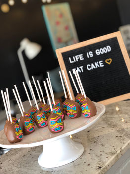 Hello! My name is Amy Flesher, owner of Frosted Pink Cakery. We are a home bakery in Central Oklahoma that specializes in custom cakes and cupcakes. We strive to offer our customers the most flavorful and freshest cakes! Along with cakes and cupcakes we offer a wide range of other sweet treats such as cookies, cake pops, brownie bites, Oreo balls, chocolate covered strawberries, and more!